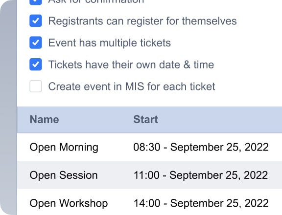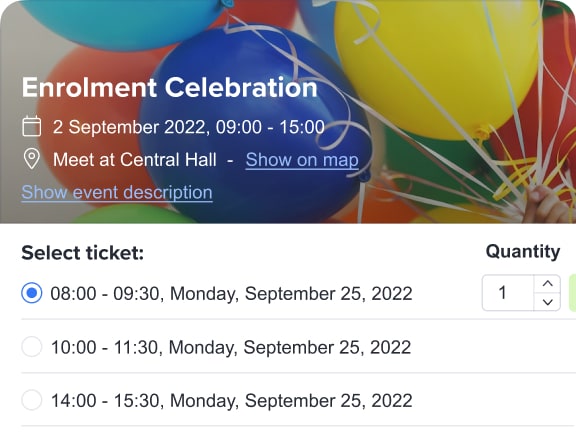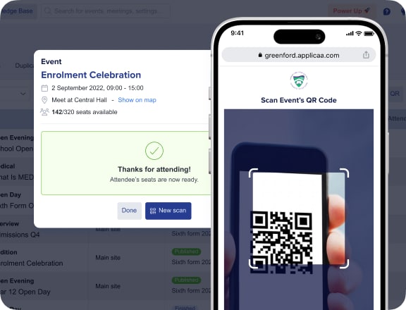 Powerful events system for open event bookings QR codes to measure accurate event attendance