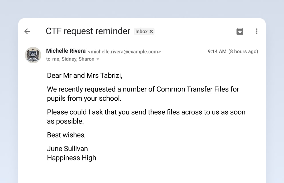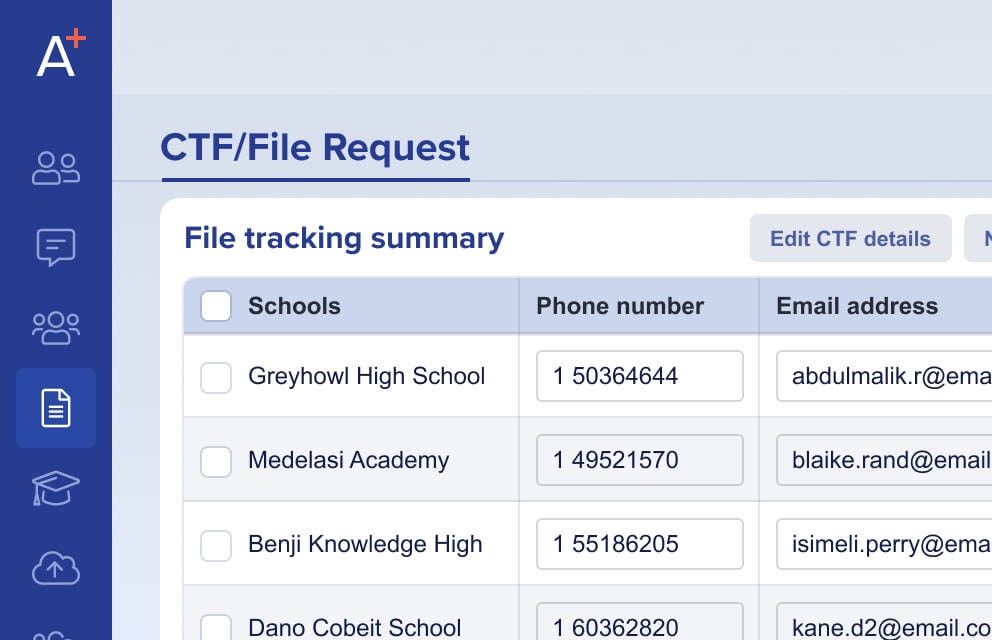 Request Common Transfer Files (CTFs) from feeder schools in just a few clicks. Let the CTF Wizard automate the whole process, keeping everything GDPR-compliant and fully trackable.