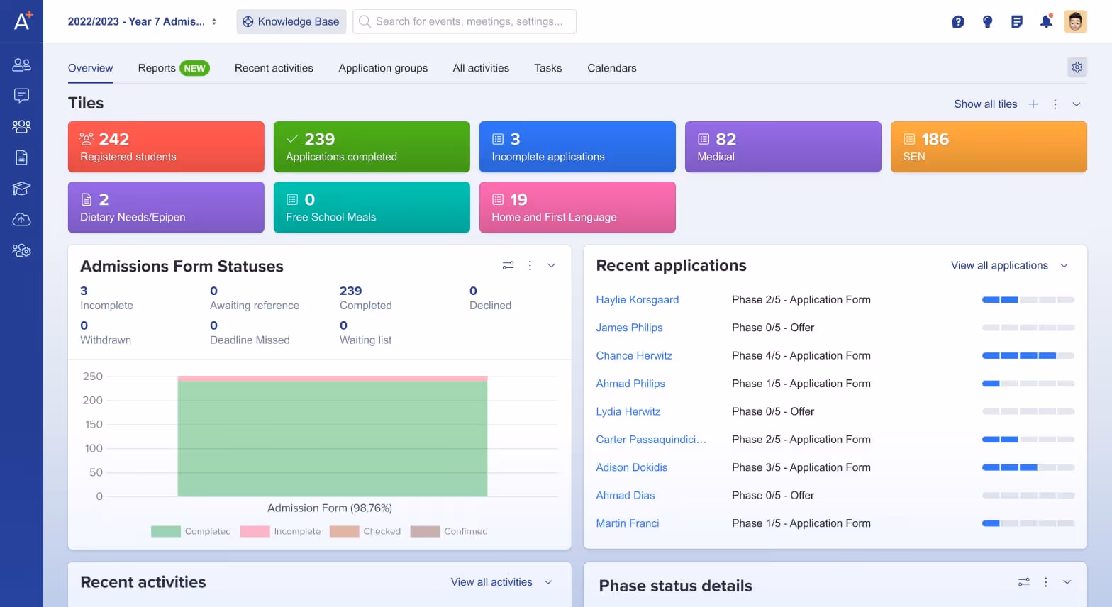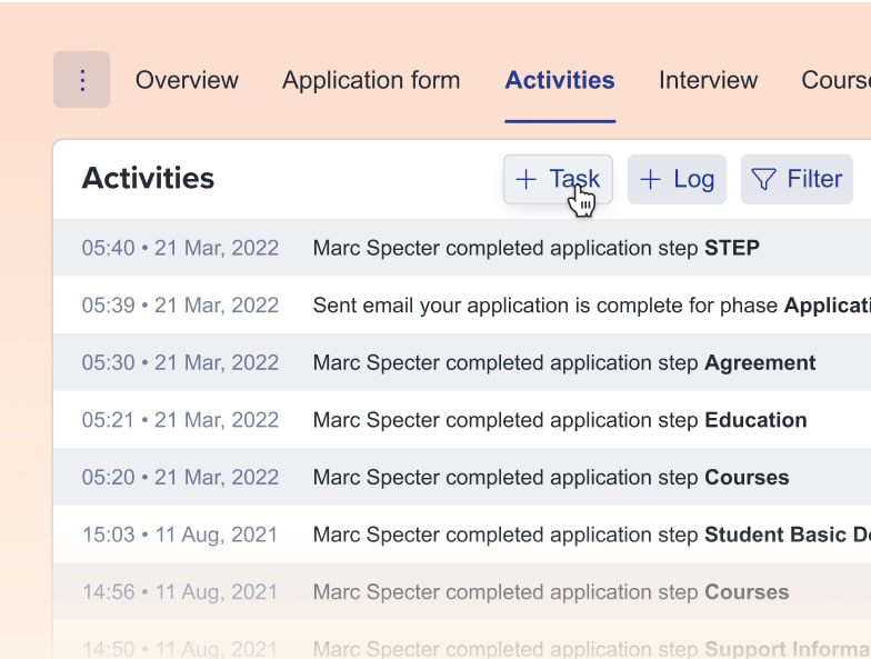 Enable staff to work together more efficiently with a centralised admissions platform that allows you to assign tasks to individuals and set access permissions.