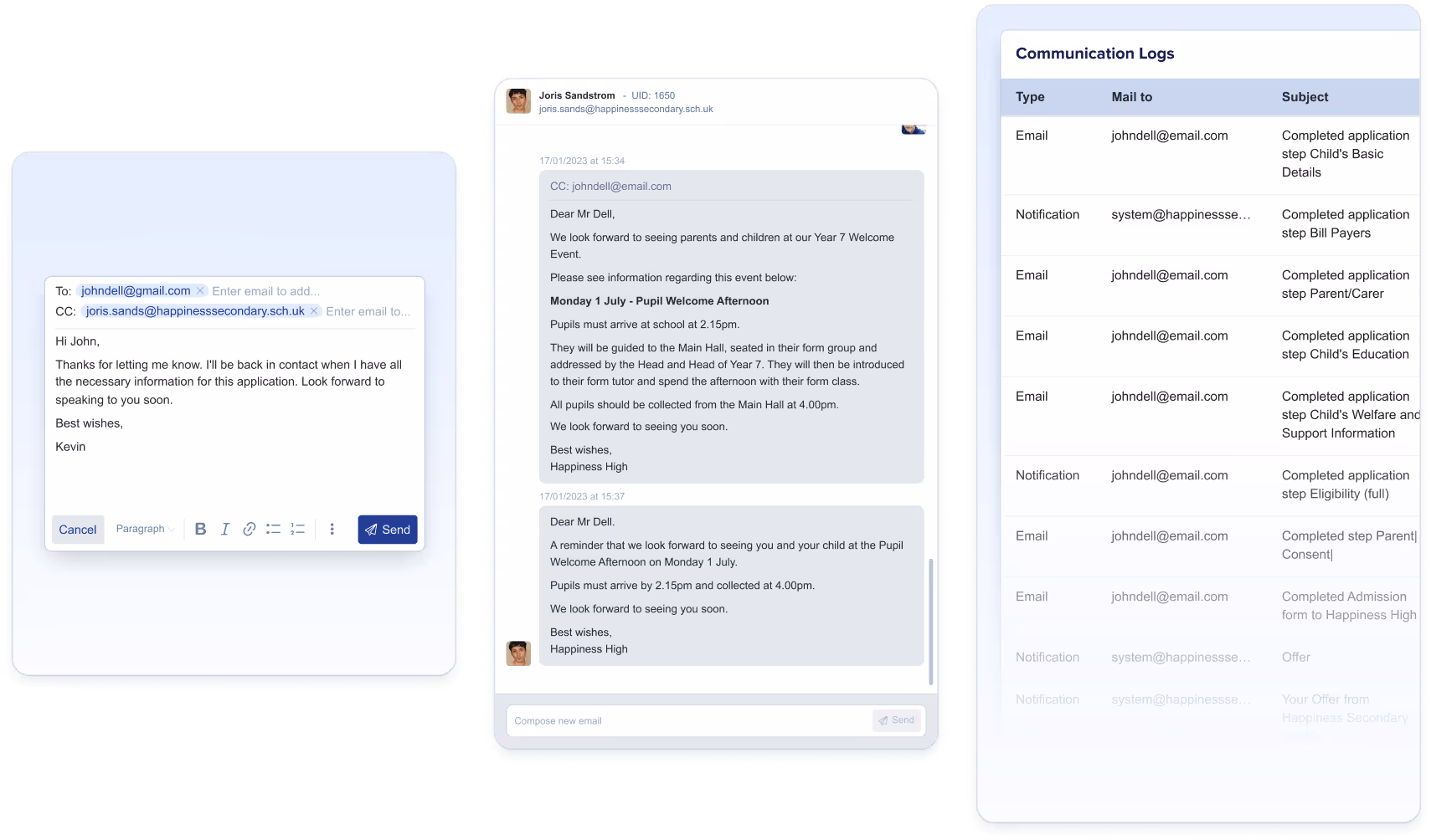 Easily import new pupils into Admissions+ to send data collection forms and meeting requests to parents, as well as transition forms to feeder schools.